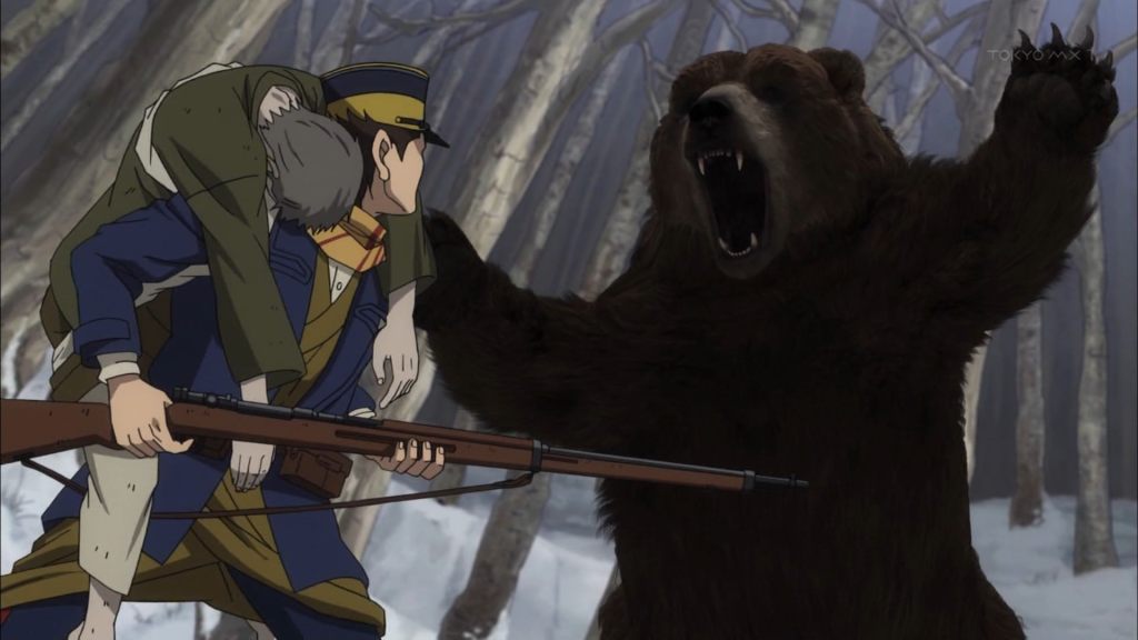 Later in the anime, he runs into a native Ainu girl, Asirpa, who is out hunting bears in the wood. Long story short, the two must defeat a bear in order to save one of the former inmate’s bodies from being eaten by the bear. Finally, they slay the bear. This prompts Sugimoto to ask Asirpa to join him in finding the treasure. She humbly declines him saying she does not kill people. After hearing Sugimoto’s story about the wife with bad vision, she removes the bear’s gallbladder and tells him it is worth a lot of Yen.