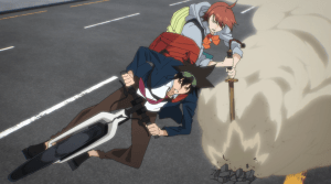 This anime is set in London. Weird, right? Well, more accurately, it is set in Front London and Reverse London. Front London is the London we all think about when we hear London. Reverse London is more like Harry Potter. Where everything seems normal and than suddenly, there’s dragons everywhere and really cool magic.